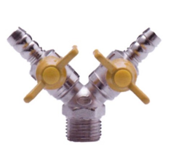 A: It uses M1/2" x M1/2" x M1/2" triple external thread for three-way connection.