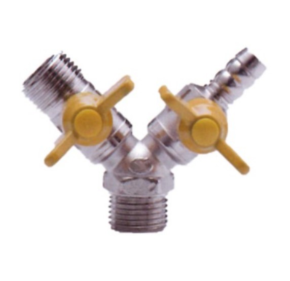A: It uses M1/2" x M1/2" x M1/2" triple external thread for three-way connection.